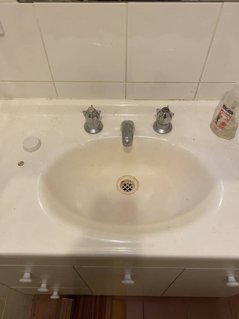 When Liam and Jonathan arrived on site, they conducted a thorough inspection. The bathroom vanity presented a challenge: the old breach assembly was abnormally deep, meaning standard quarter-turn taps would not seat properly and kept spinning freely. In situations like this, quick fixes won’t cut it — the only proper solution is to replace the entire breach assembly to guarantee long-term reliability.