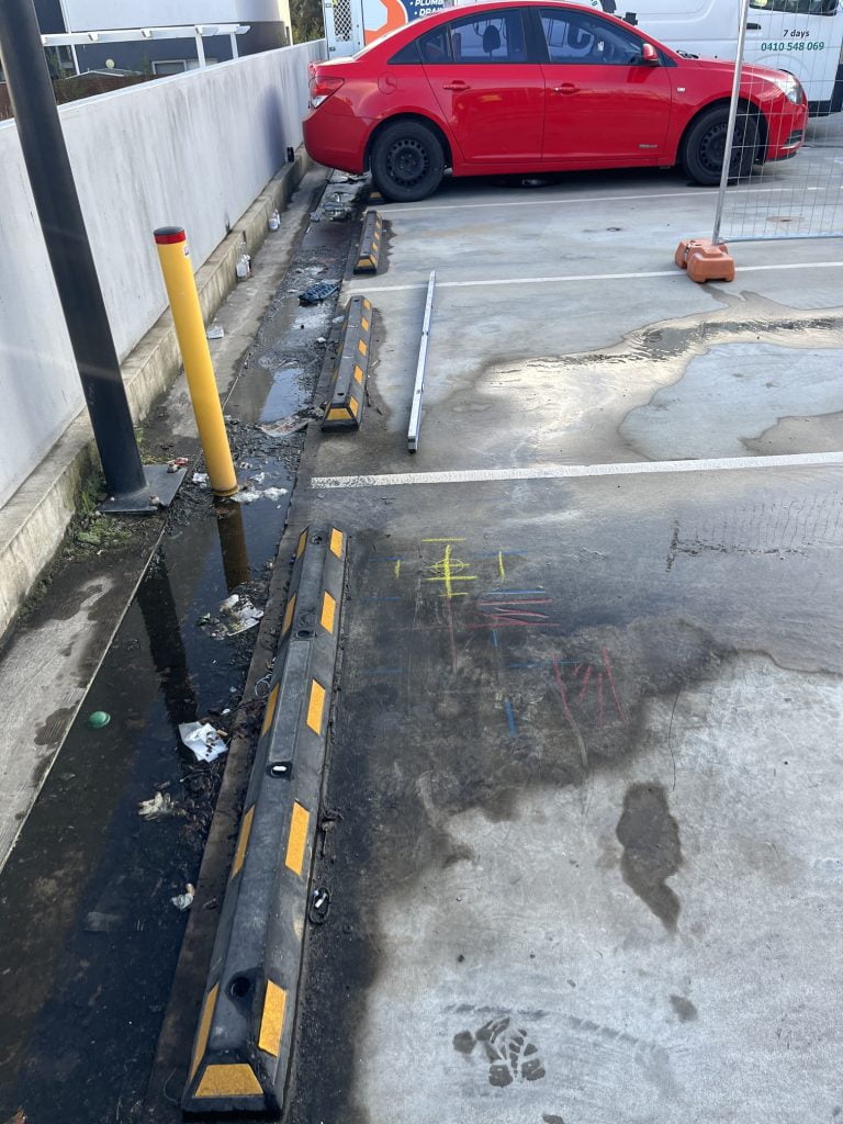 Water Tight Canberra was engaged by Zest Residential Complex to address ongoing water pooling issues in their upper car park. The lack of proper drainage resulted in significant water accumulation after every rainfall, creating both an inconvenience for residents and potential long-term structural risks. Our task was to design and install a drainage system that would eliminate this pooling by directing water into the existing stormwater system.