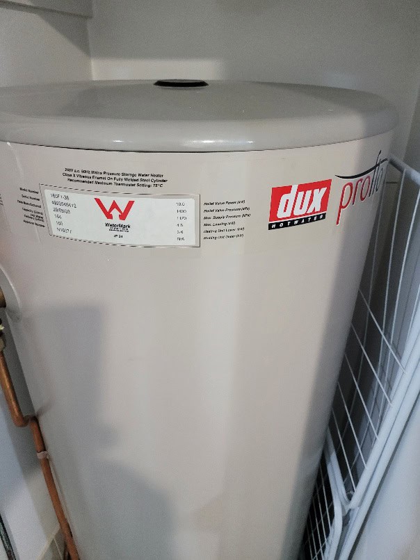 Brayden tested electrical continuity and water temperature, confirming the internal cylinder failure. He discussed several replacement options with the customer, outlining the Thermann 160L single-element electric hot water system as the most efficient, warranty-backed, and direct-fit solution for the space.