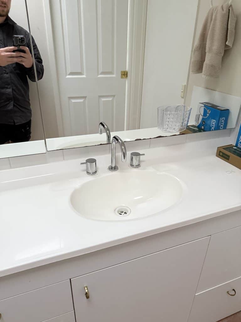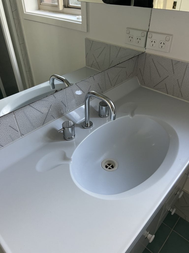 Ensuite vanity basin and tapware prior to installation of new fittings.